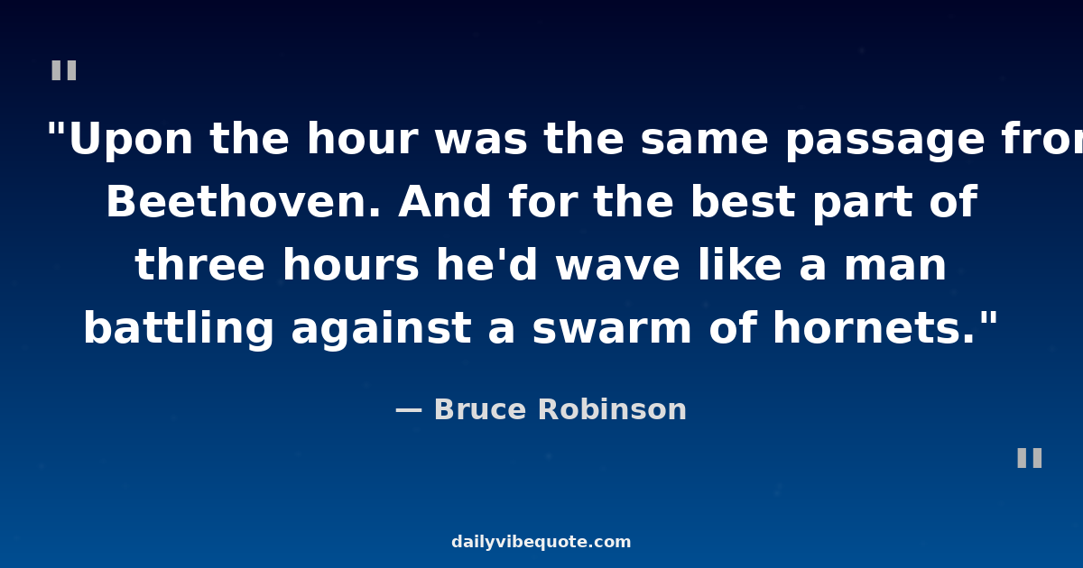 "Upon the hour was the same passage from Beethoven. And for the best part of three hours he'd wave like a man battling against a swarm of hornets."