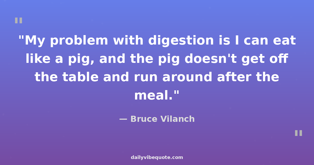 "My problem with digestion is I can eat like a pig, and the pig doesn't get off the table and run around after the meal."