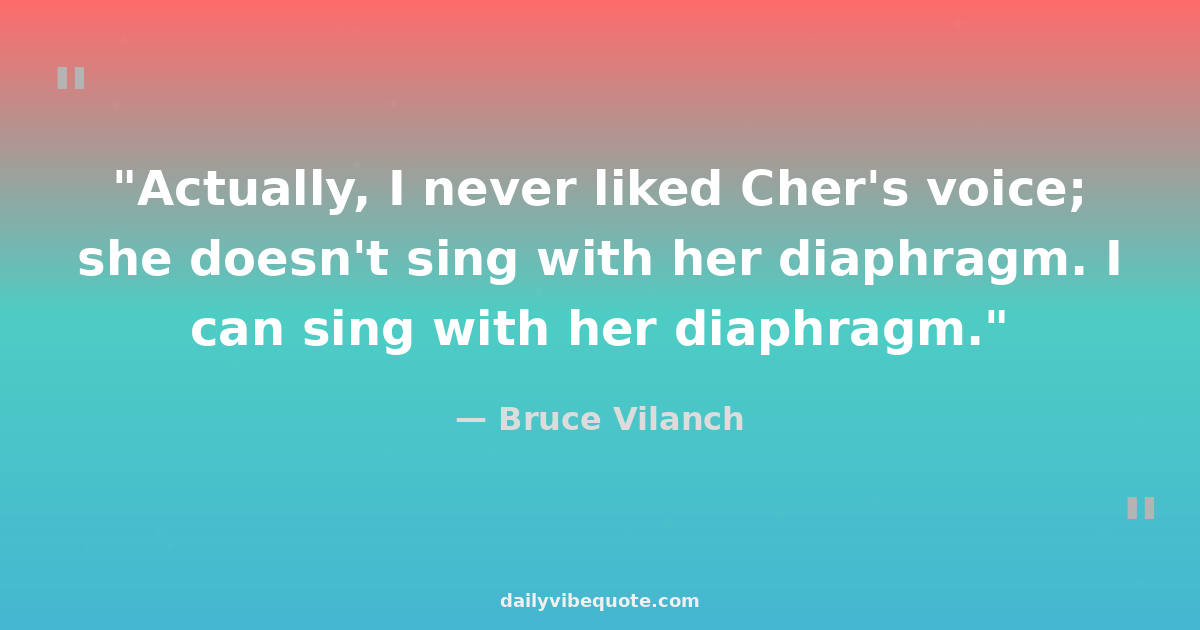 "Actually, I never liked Cher's voice; she doesn't sing with her diaphragm. I can sing with her diaphragm."