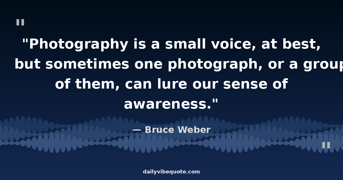 "Photography is a small voice, at best, but sometimes one photograph, or a group of them, can lure our sense of awareness."
