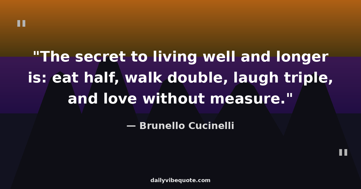 "The secret to living well and longer is: eat half, walk double, laugh triple, and love without measure."