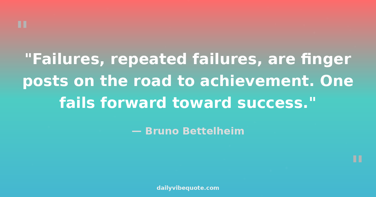 "Failures, repeated failures, are finger posts on the road to achievement. One fails forward toward success."