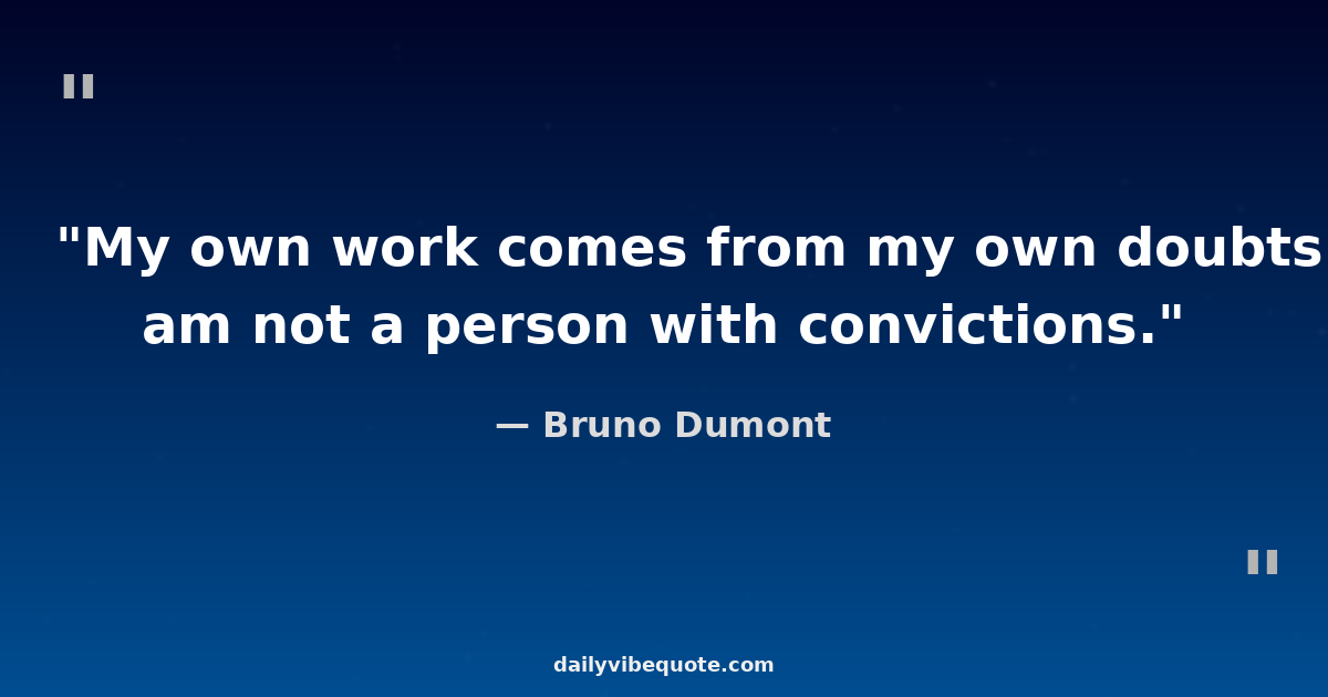 "My own work comes from my own doubts. I am not a person with convictions."