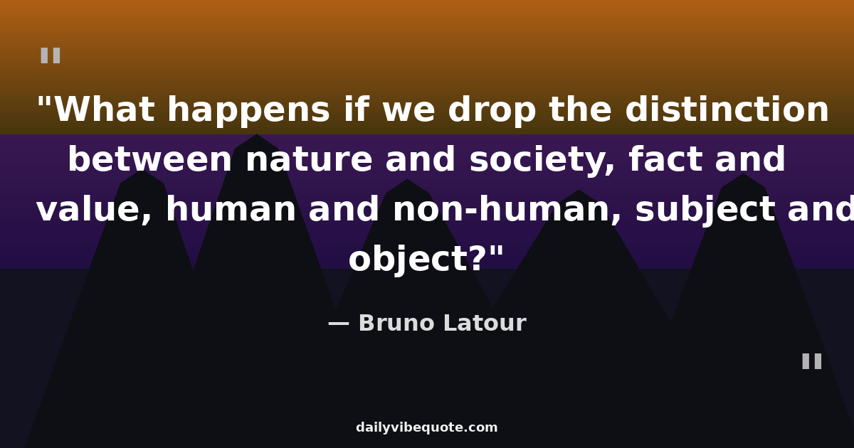 "What happens if we drop the distinction between nature and society, fact and value, human and non-human, subject and object?"