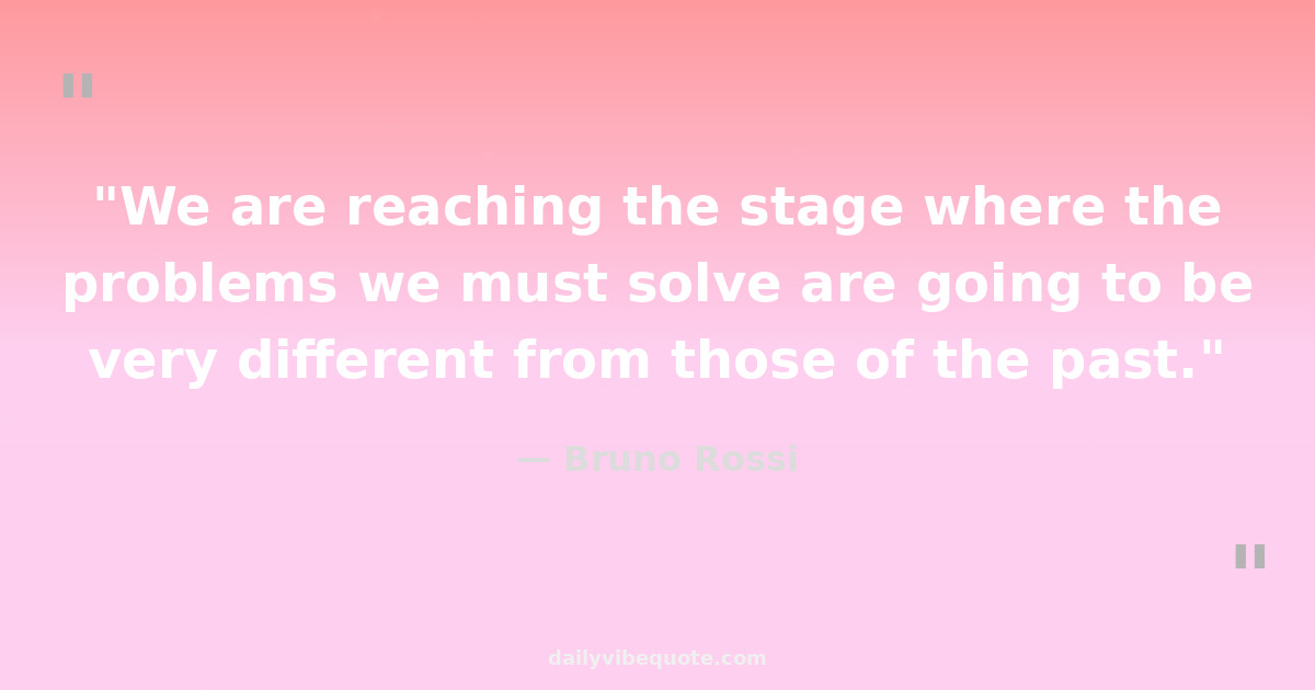 "We are reaching the stage where the problems we must solve are going to be very different from those of the past."
