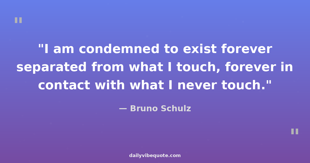 "I am condemned to exist forever separated from what I touch, forever in contact with what I never touch."