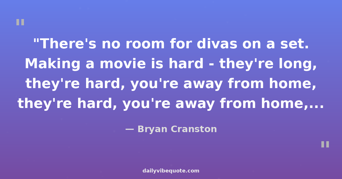 "There's no room for divas on a set. Making a movie is hard - they're long, they're hard, you're away from home, you're away from your family, you're away from your friends."
