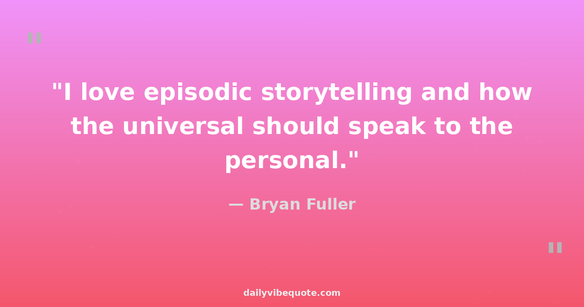 "I love episodic storytelling and how the universal should speak to the personal."