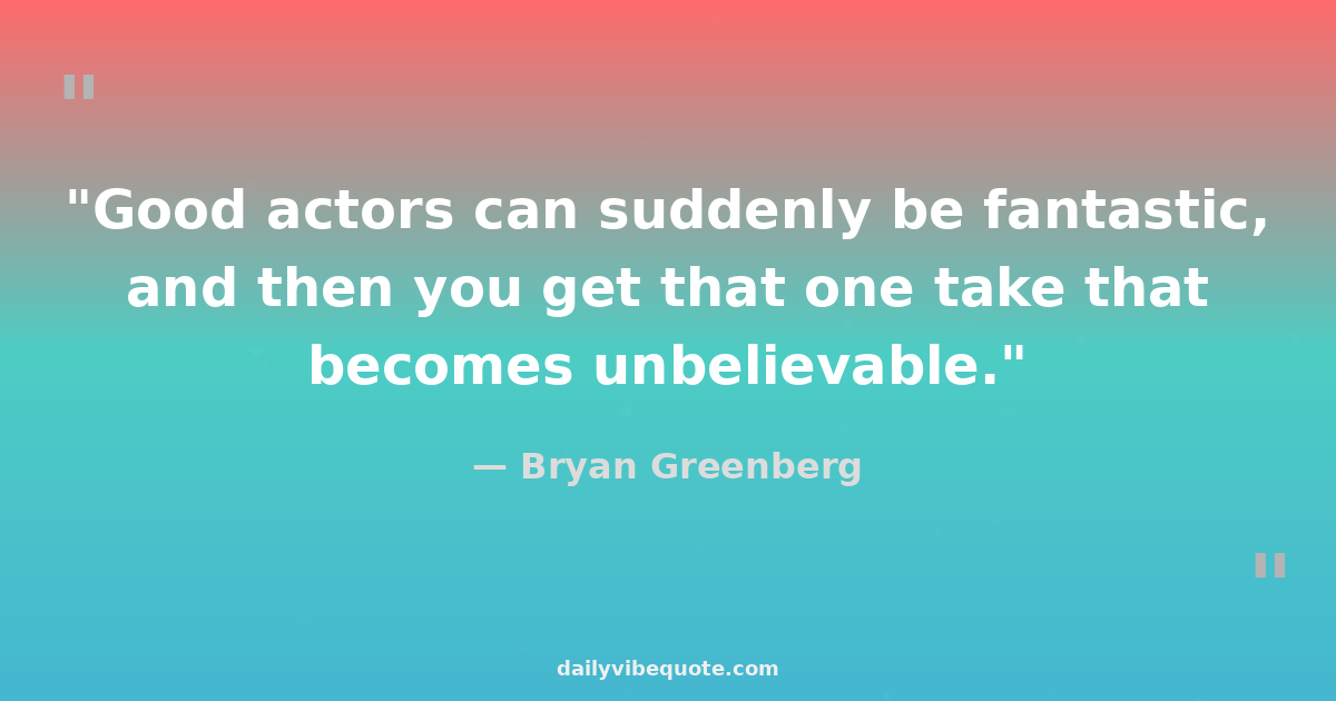 "Good actors can suddenly be fantastic, and then you get that one take that becomes unbelievable."