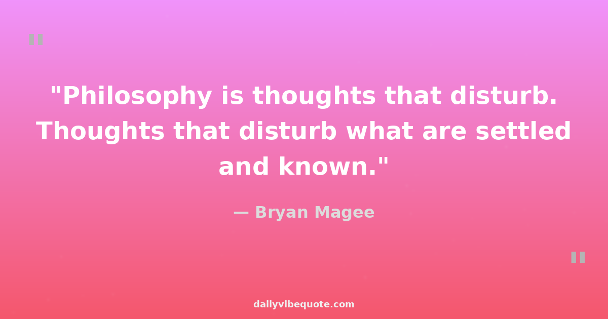 "Philosophy is thoughts that disturb. Thoughts that disturb what are settled and known."