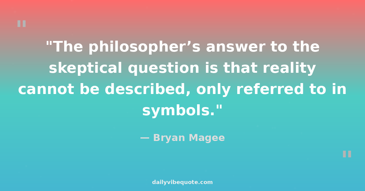 "The philosopher’s answer to the skeptical question is that reality cannot be described, only referred to in symbols."