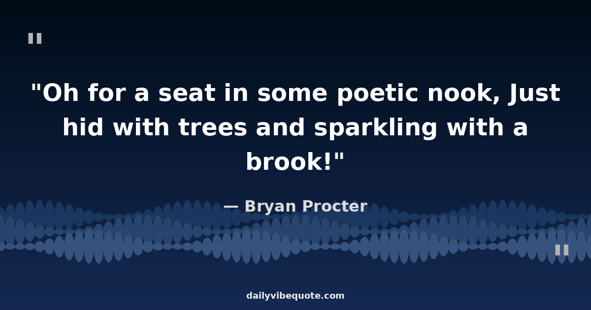 "Oh for a seat in some poetic nook, Just hid with trees and sparkling with a brook!"