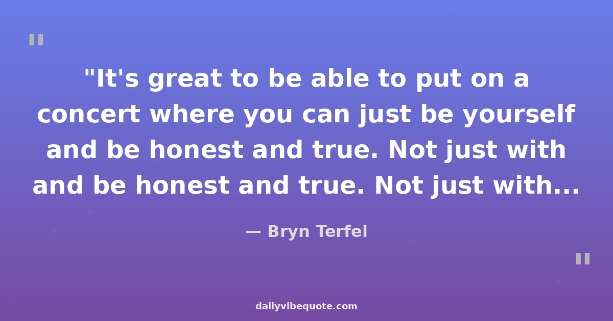 "It's great to be able to put on a concert where you can just be yourself and be honest and true. Not just with the way you sing, but the way you are between songs."