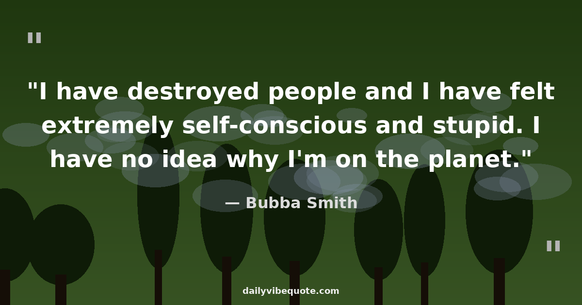 "I have destroyed people and I have felt extremely self-conscious and stupid. I have no idea why I'm on the planet."