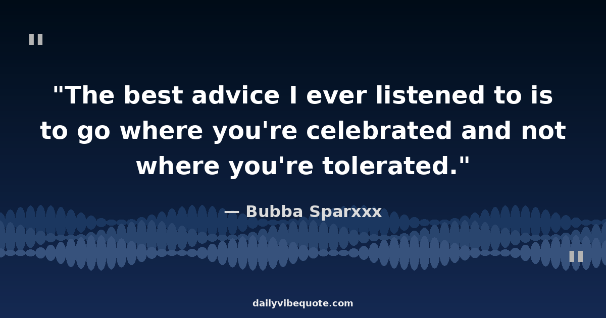 "The best advice I ever listened to is to go where you're celebrated and not where you're tolerated."