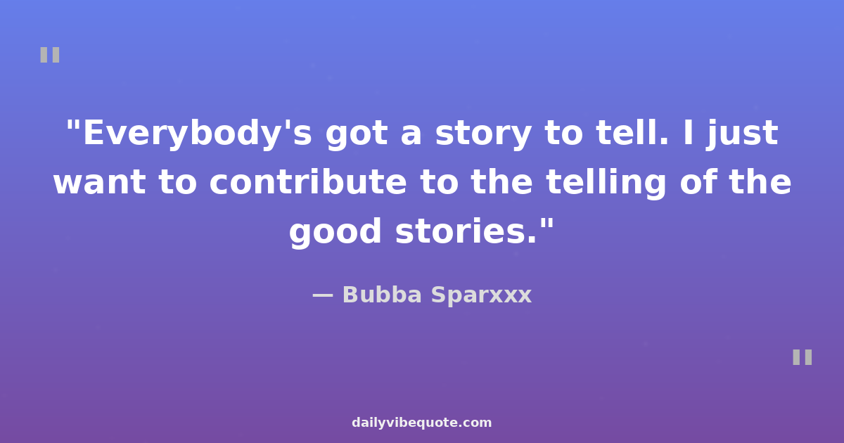 "Everybody's got a story to tell. I just want to contribute to the telling of the good stories."