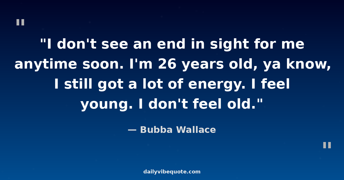 "I don't see an end in sight for me anytime soon. I'm 26 years old, ya know, I still got a lot of energy. I feel young. I don't feel old."