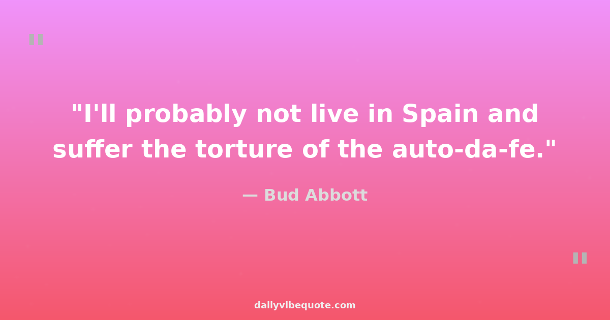"I'll probably not live in Spain and suffer the torture of the auto-da-fe."
