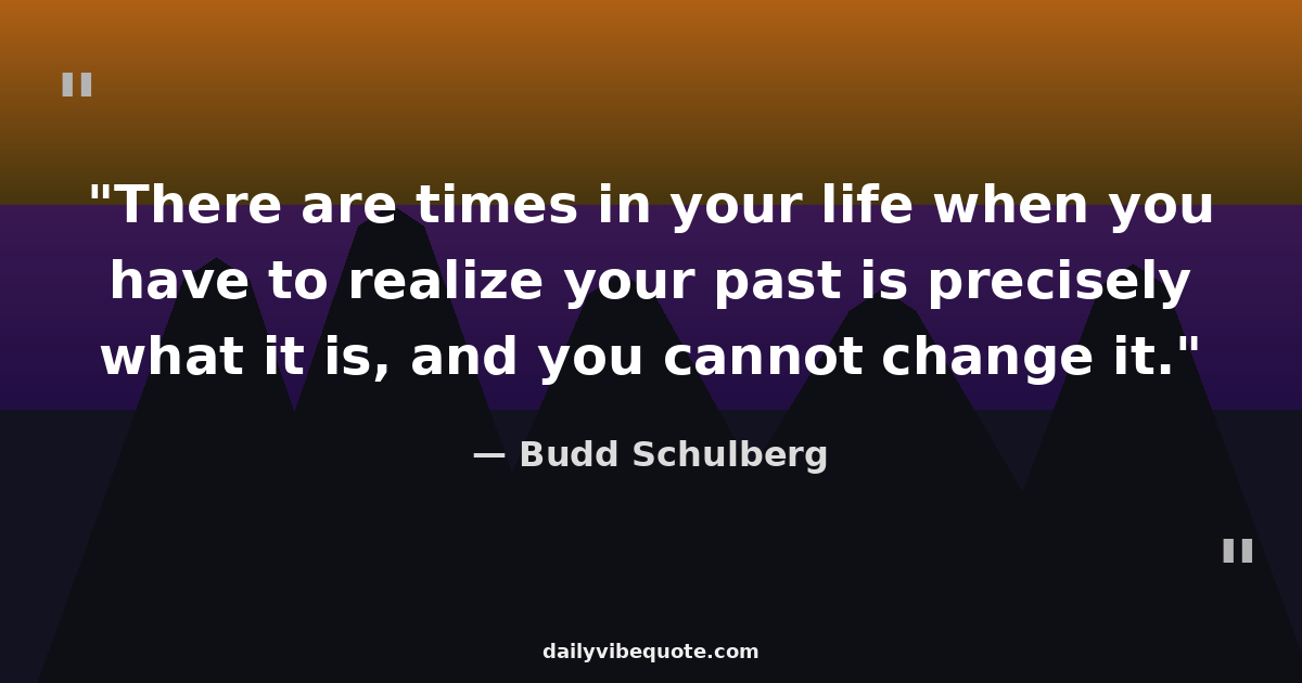 "There are times in your life when you have to realize your past is precisely what it is, and you cannot change it."