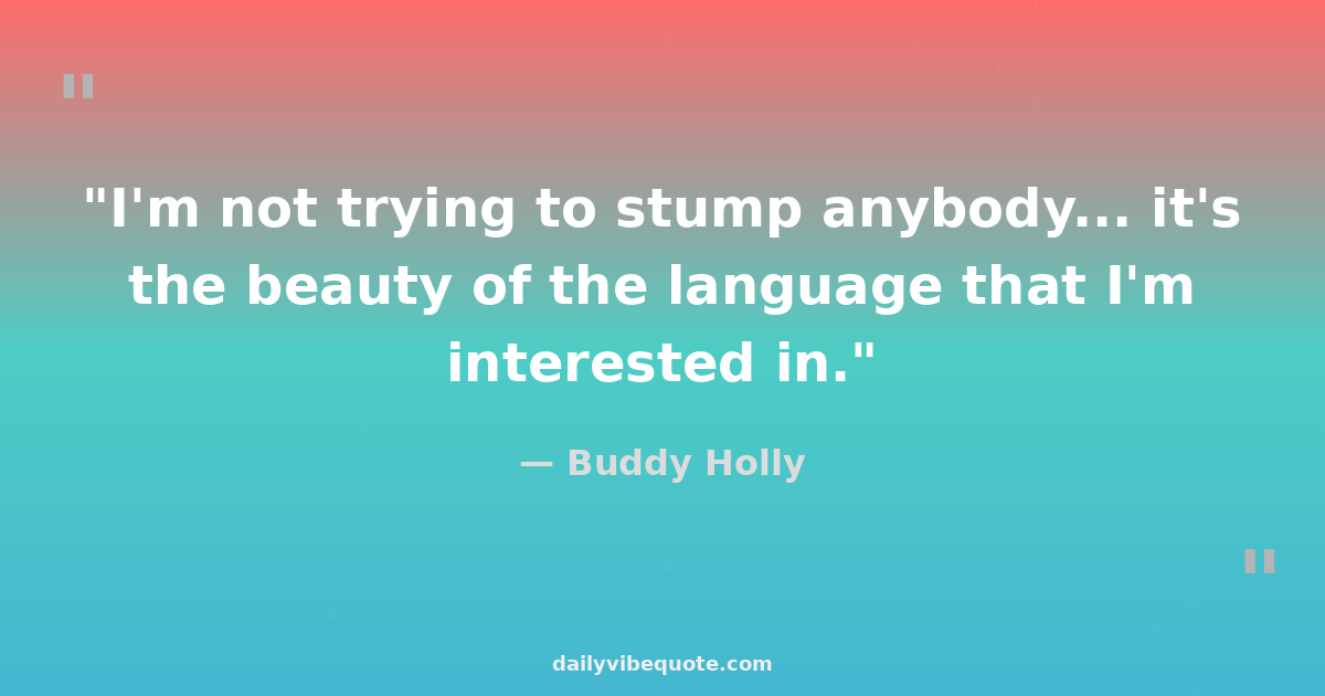 "I'm not trying to stump anybody... it's the beauty of the language that I'm interested in."