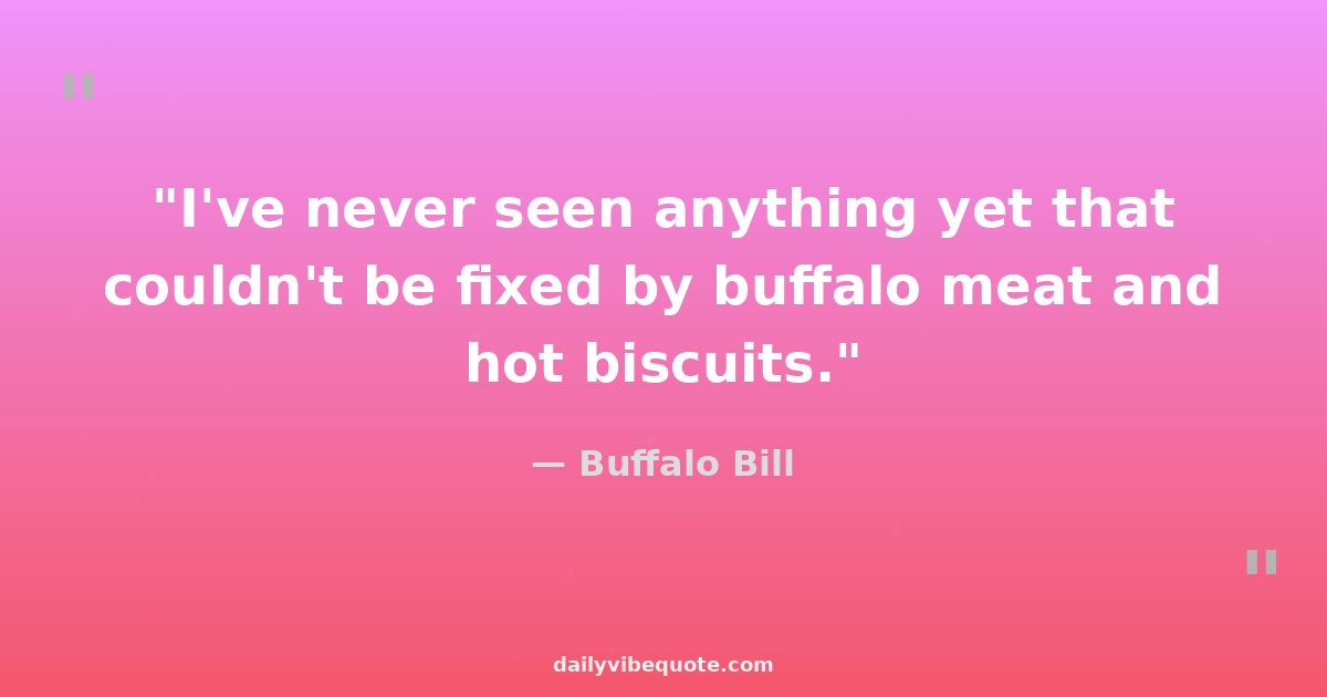 "I've never seen anything yet that couldn't be fixed by buffalo meat and hot biscuits."
