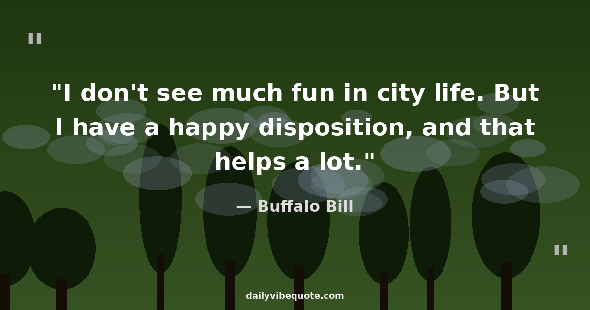 "I don't see much fun in city life. But I have a happy disposition, and that helps a lot."