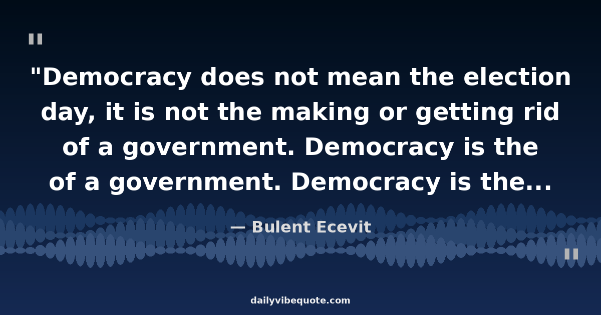 "Democracy does not mean the election day, it is not the making or getting rid of a government. Democracy is the assurance of the human rights and freedom. It is the self-confidence of people, lived with honorable living."