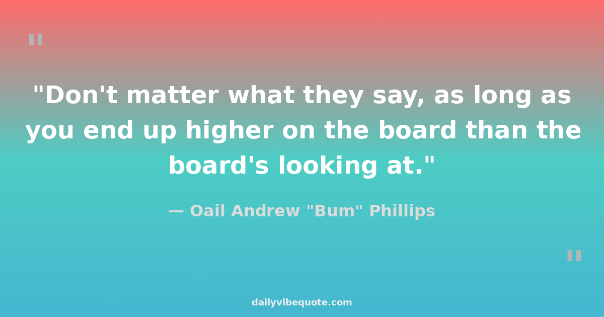 "Don't matter what they say, as long as you end up higher on the board than the board's looking at."