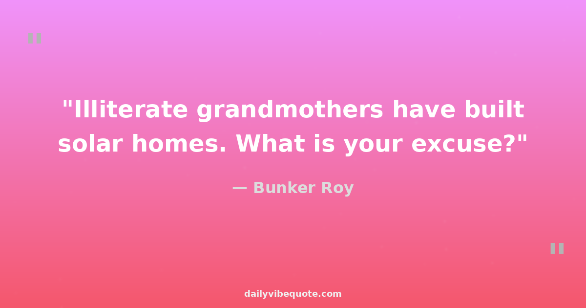 "Illiterate grandmothers have built solar homes. What is your excuse?"