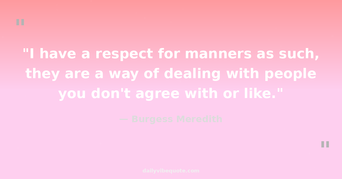 "I have a respect for manners as such, they are a way of dealing with people you don't agree with or like."