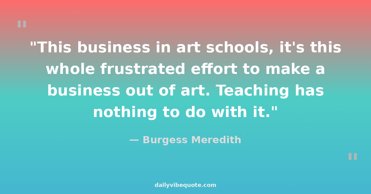 "This business in art schools, it's this whole frustrated effort to make a business out of art. Teaching has nothing to do with it."