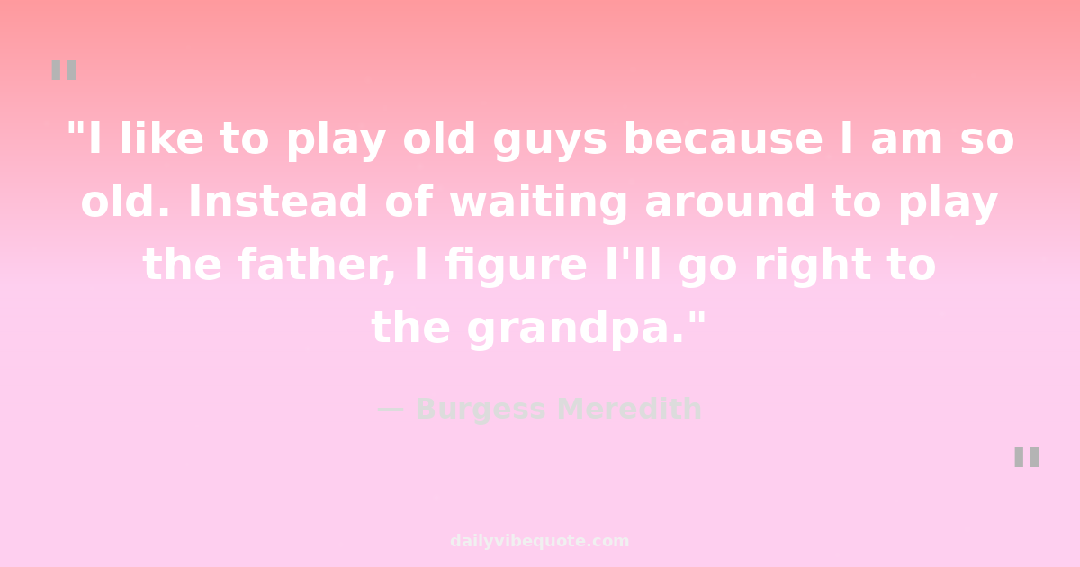 "I like to play old guys because I am so old. Instead of waiting around to play the father, I figure I'll go right to the grandpa."