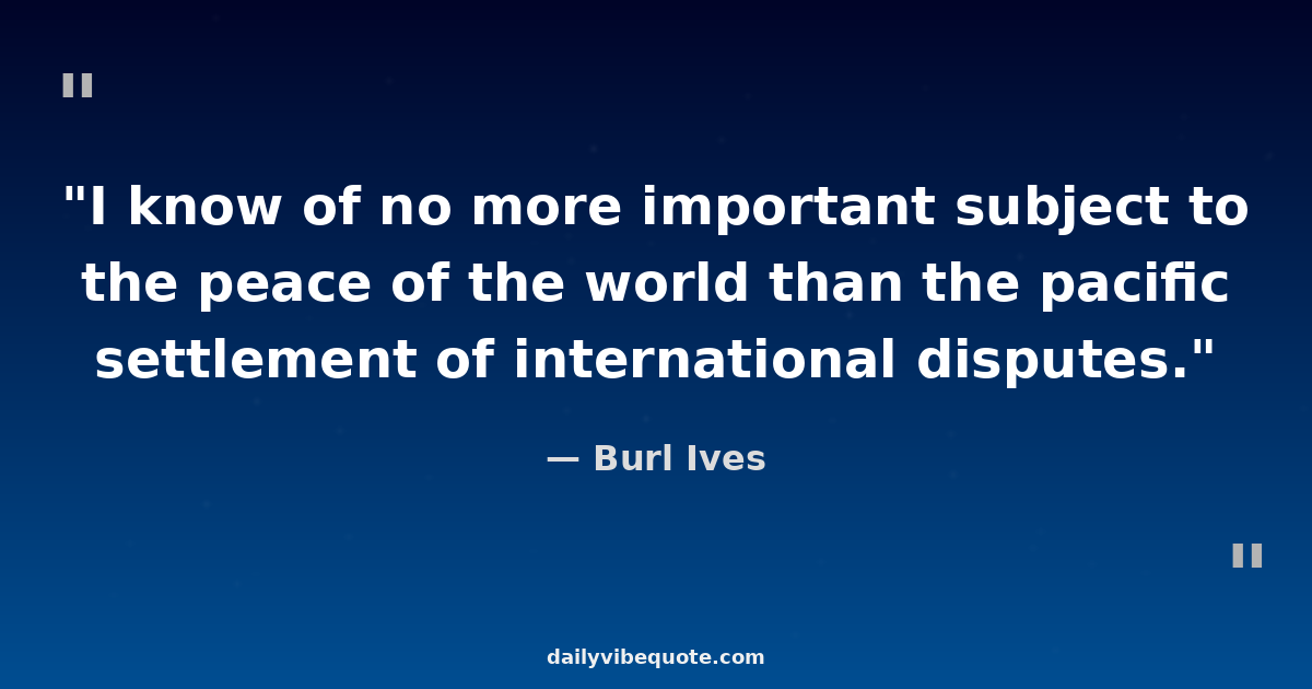 "I know of no more important subject to the peace of the world than the pacific settlement of international disputes."