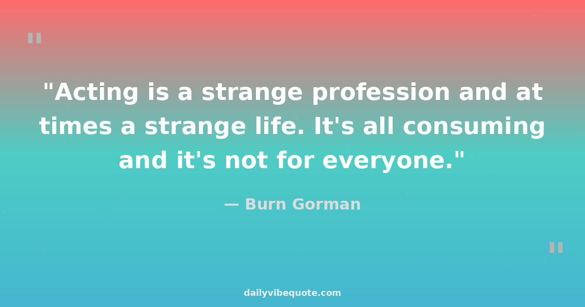 "Acting is a strange profession and at times a strange life. It's all consuming and it's not for everyone."