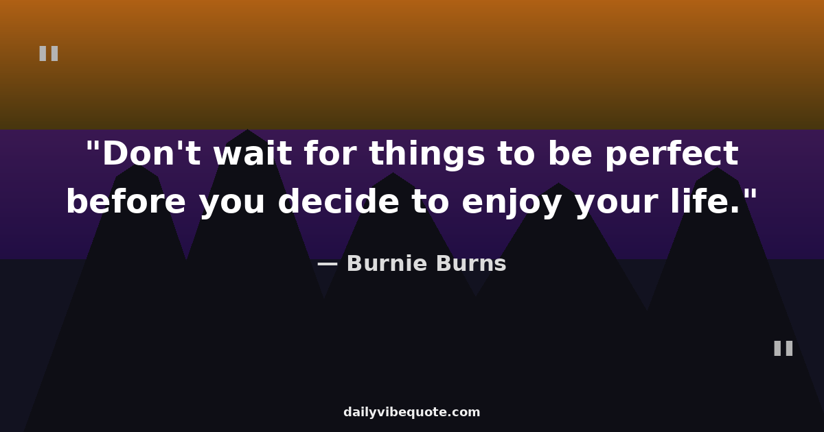"Don't wait for things to be perfect before you decide to enjoy your life."