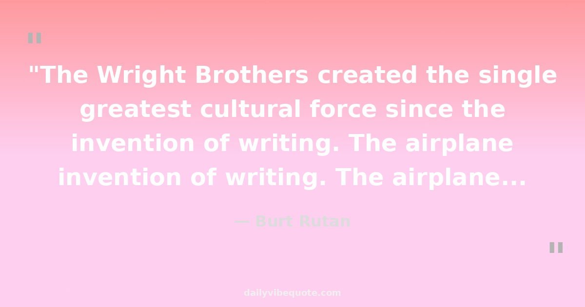 "The Wright Brothers created the single greatest cultural force since the invention of writing. The airplane became the first World Wide Web, bringing people, languages, ideas, and values together."