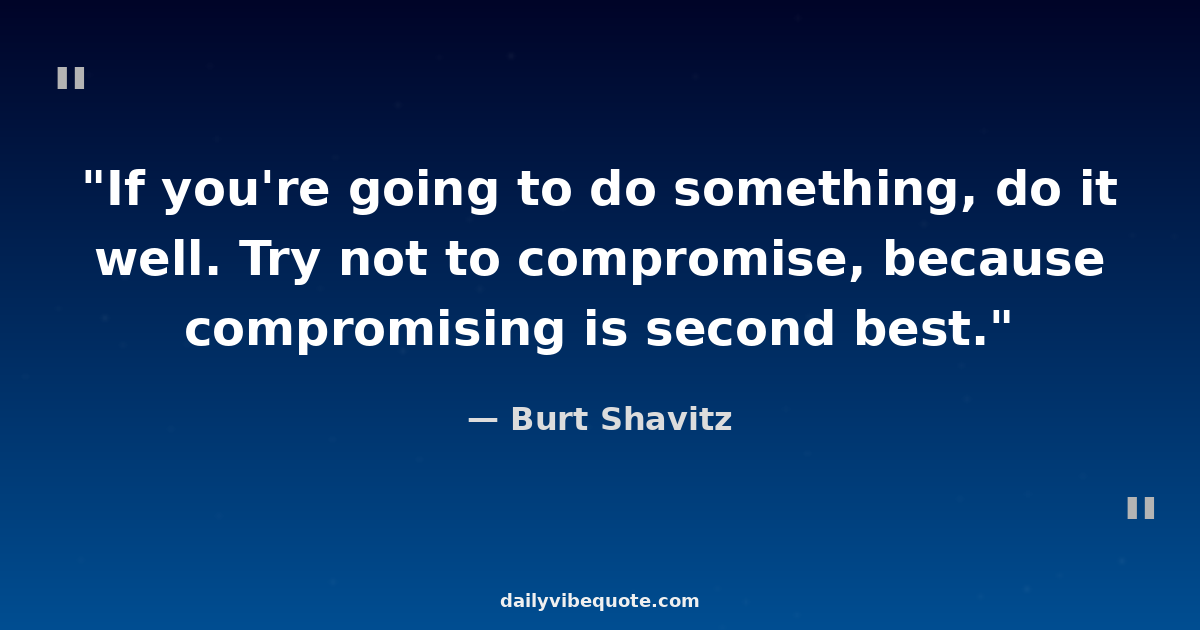 "If you're going to do something, do it well. Try not to compromise, because compromising is second best."