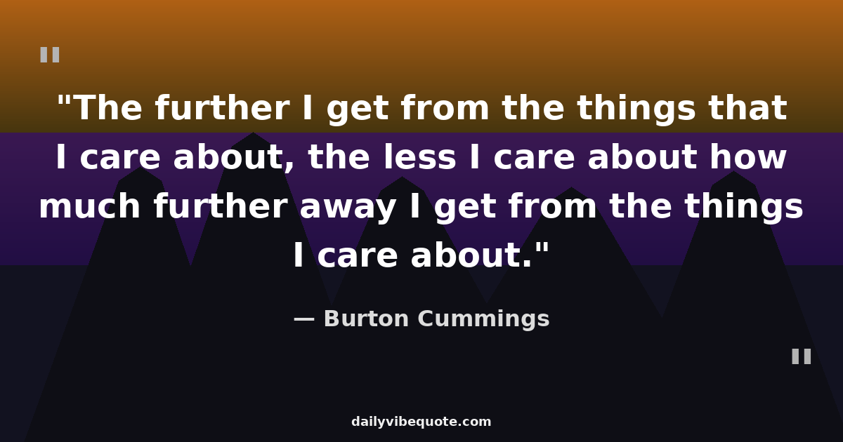 "The further I get from the things that I care about, the less I care about how much further away I get from the things I care about."