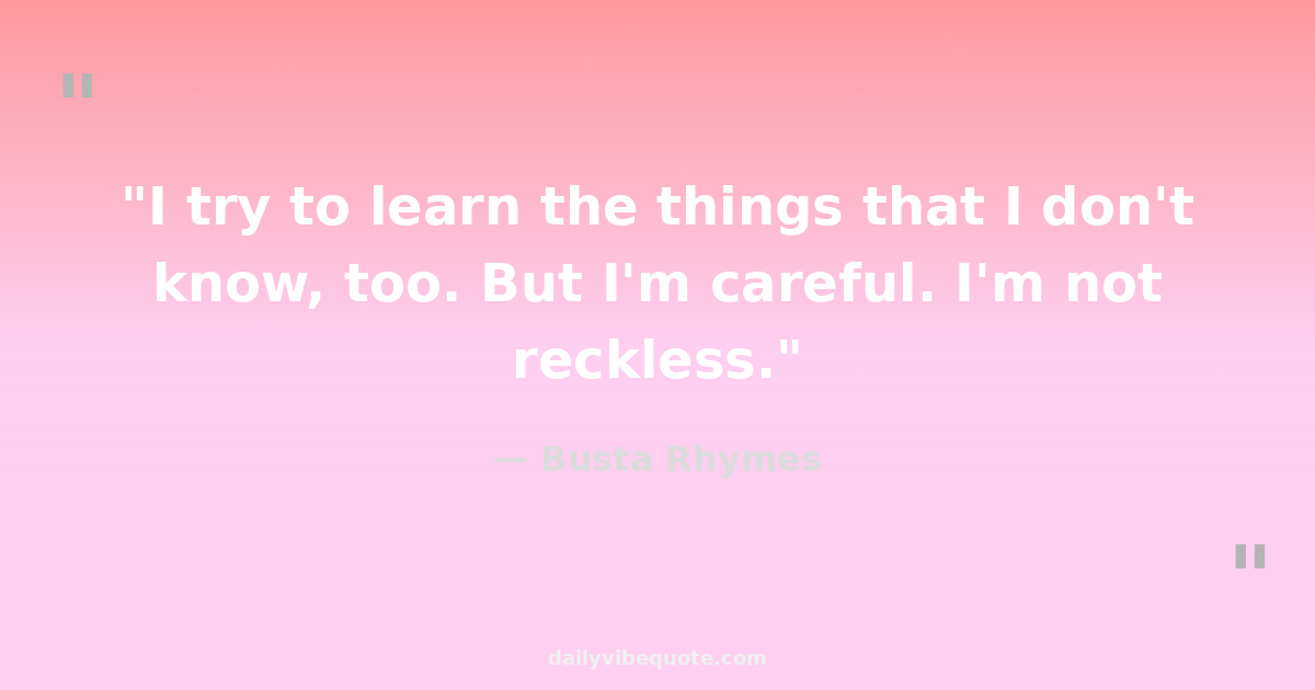 "I try to learn the things that I don't know, too. But I'm careful. I'm not reckless."