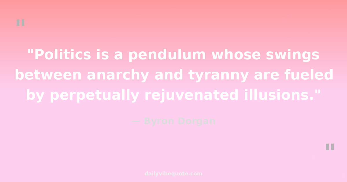"Politics is a pendulum whose swings between anarchy and tyranny are fueled by perpetually rejuvenated illusions."
