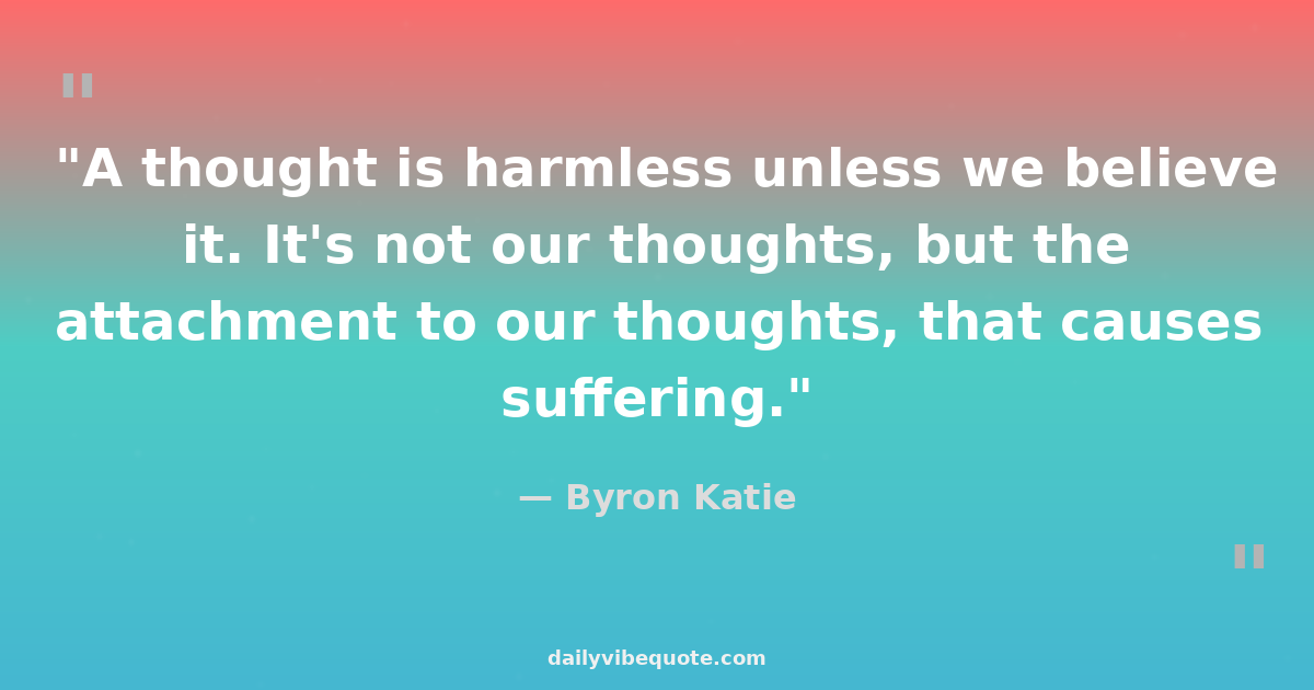 "A thought is harmless unless we believe it. It's not our thoughts, but the attachment to our thoughts, that causes suffering."