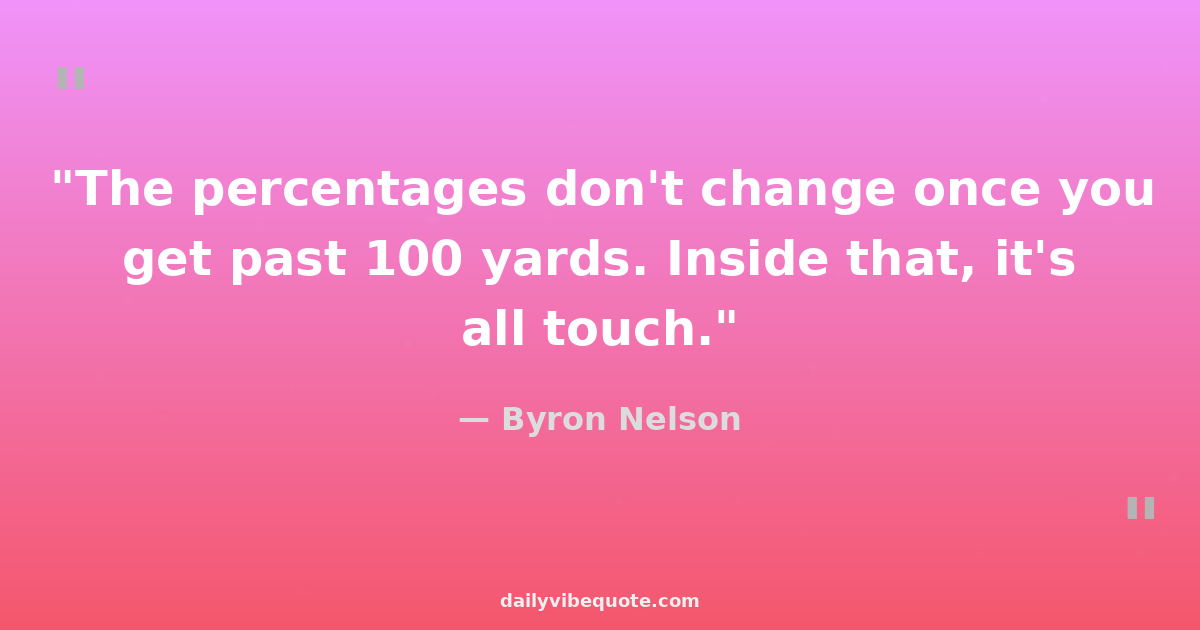 "The percentages don't change once you get past 100 yards. Inside that, it's all touch."