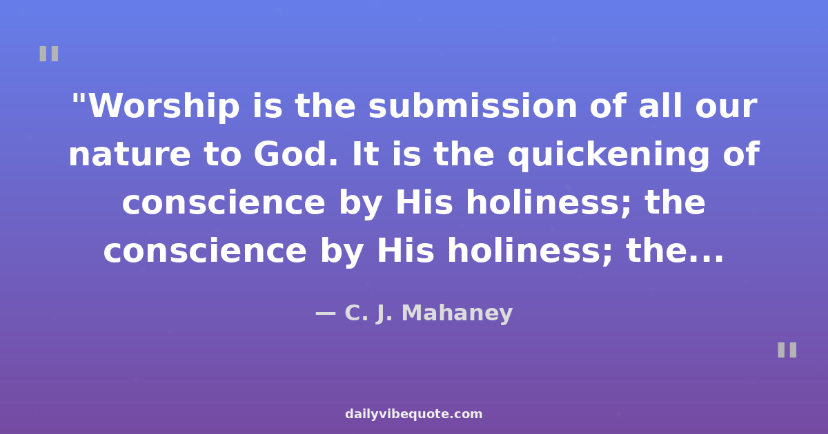 "Worship is the submission of all our nature to God. It is the quickening of conscience by His holiness; the nourishment of mind with His truth; the purifying of imagination by His beauty; the opening of the heart to His love; the surrender of will to His purpose."