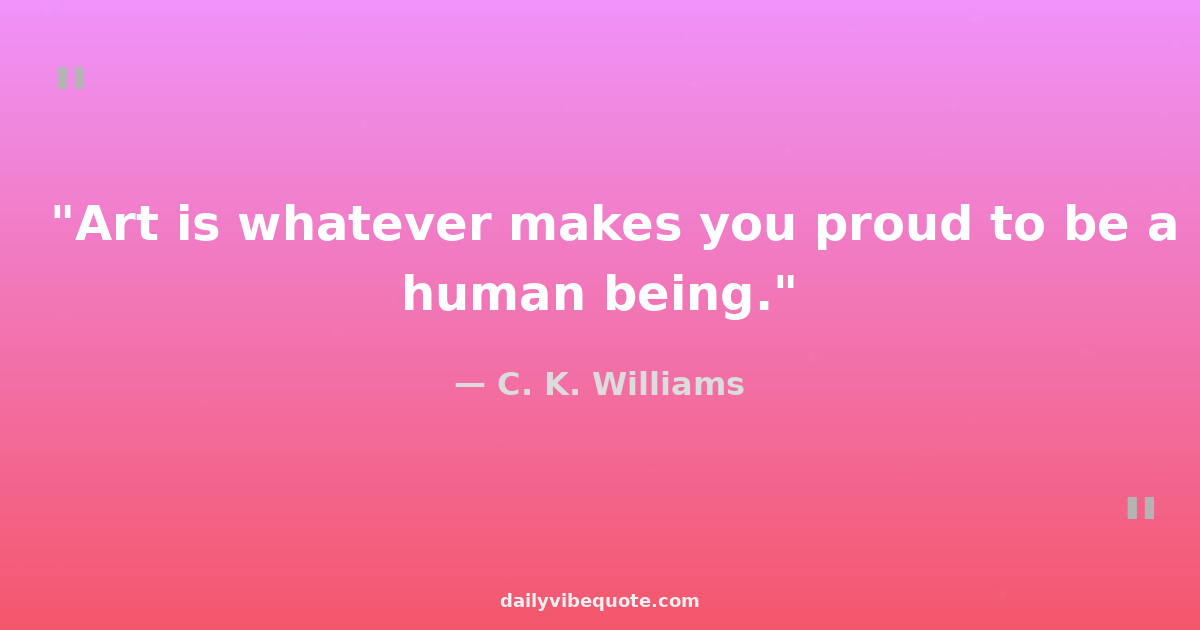 "Art is whatever makes you proud to be human."