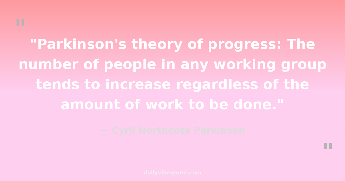"Parkinson's theory of progress: The number of people in any working group tends to increase regardless of the amount of work to be done."