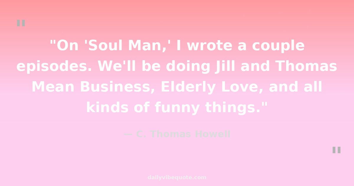 "On 'Soul Man,' I wrote a couple episodes. We'll be doing Jill and Thomas Mean Business, Elderly Love, and all kinds of funny things."
