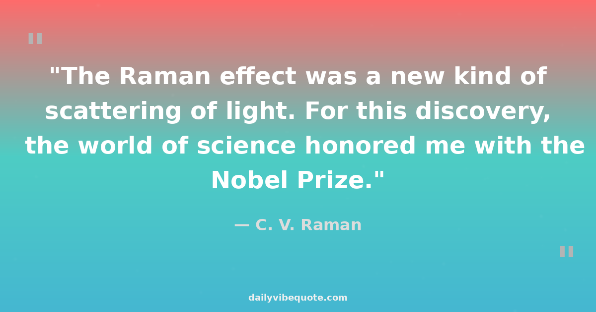 "The Raman effect was a new kind of scattering of light. For this discovery, the world of science honored me with the Nobel Prize."