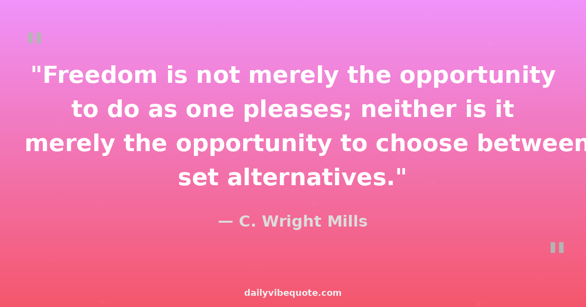 "Freedom is not merely the opportunity to do as one pleases; neither is it merely the opportunity to choose between set alternatives."