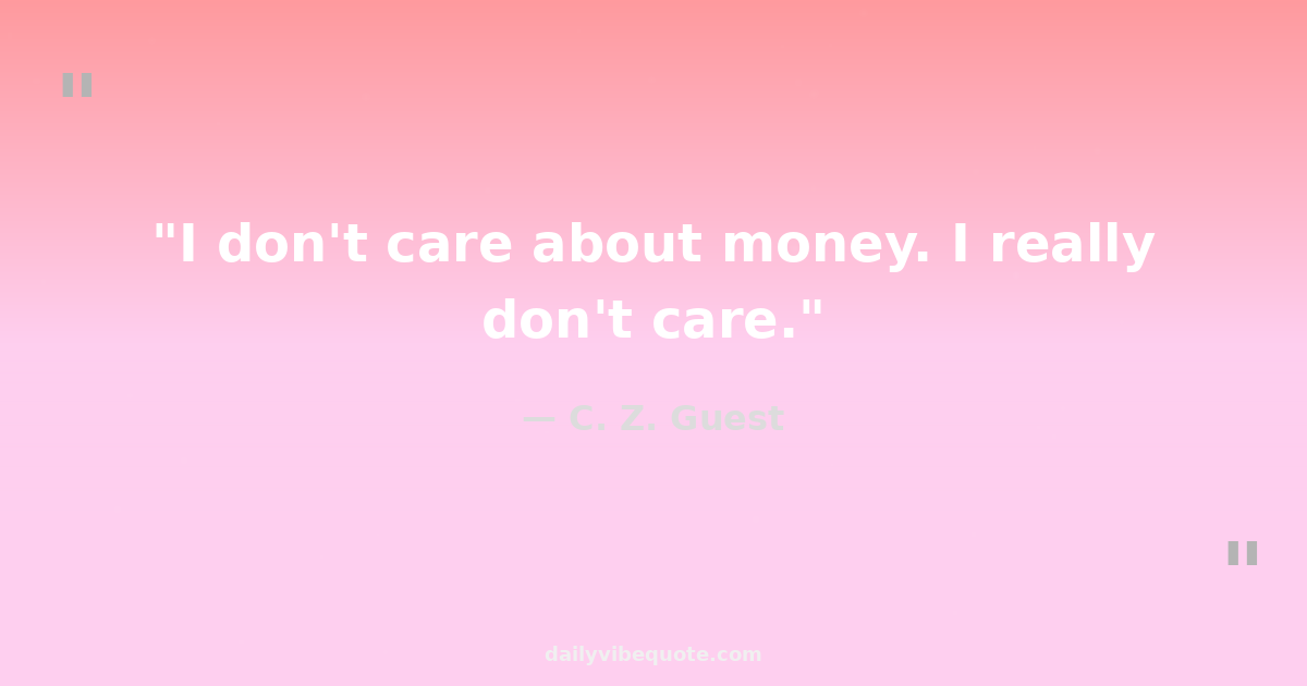 "I don't care about money. I really don't care."