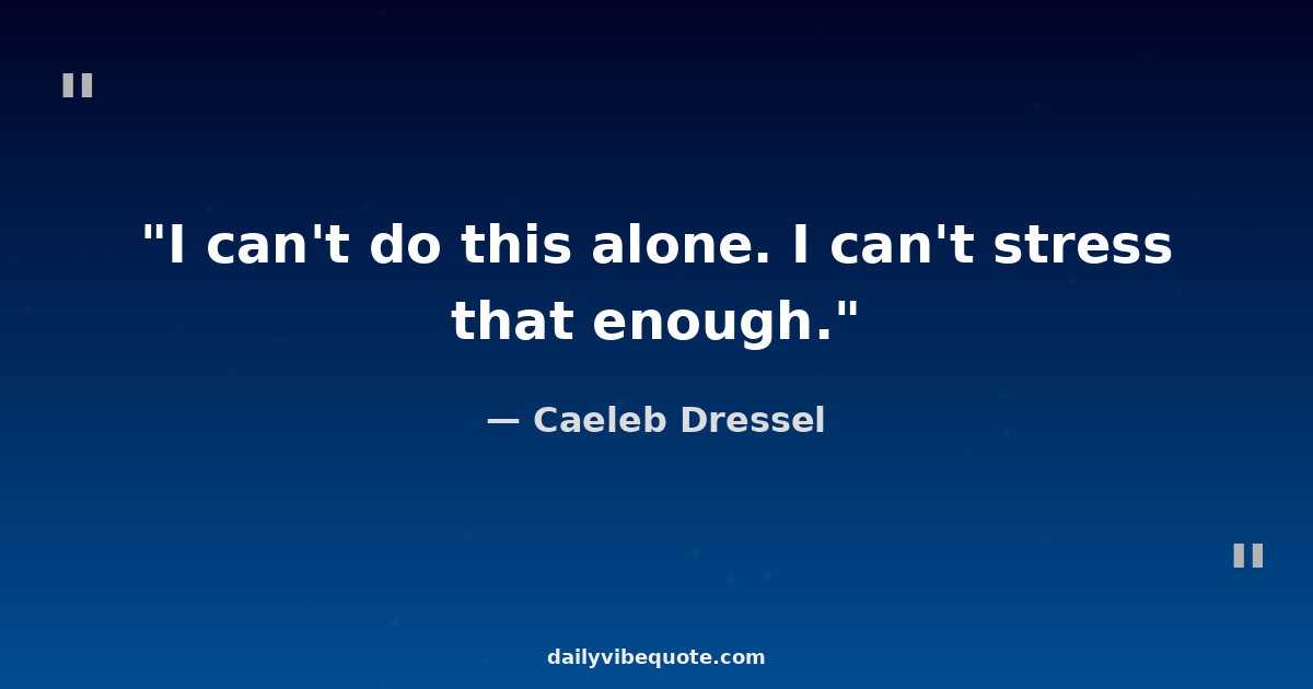 "I can't do this alone. I can't stress that enough."